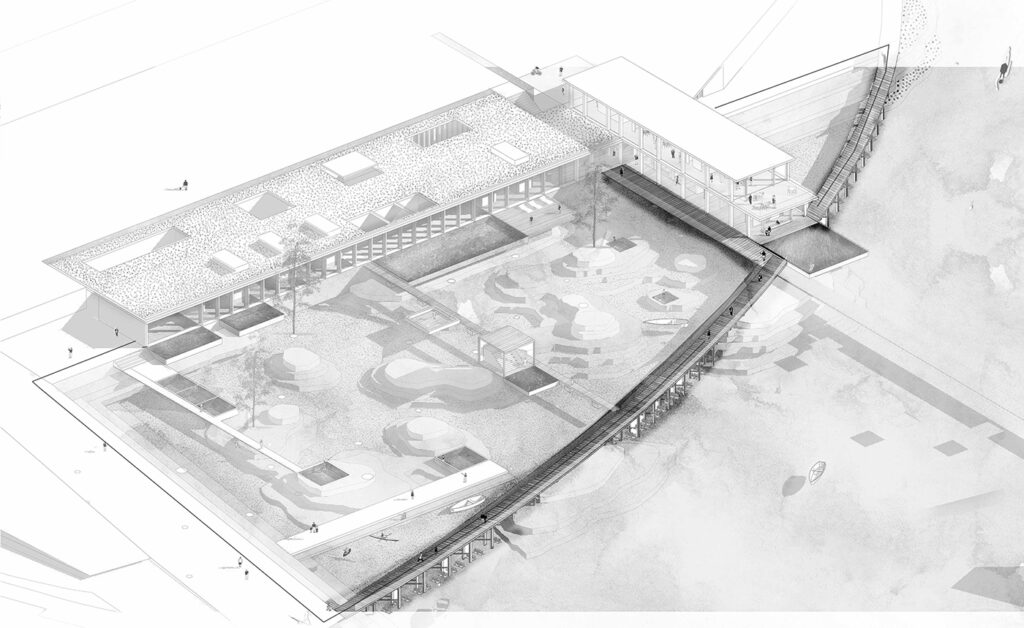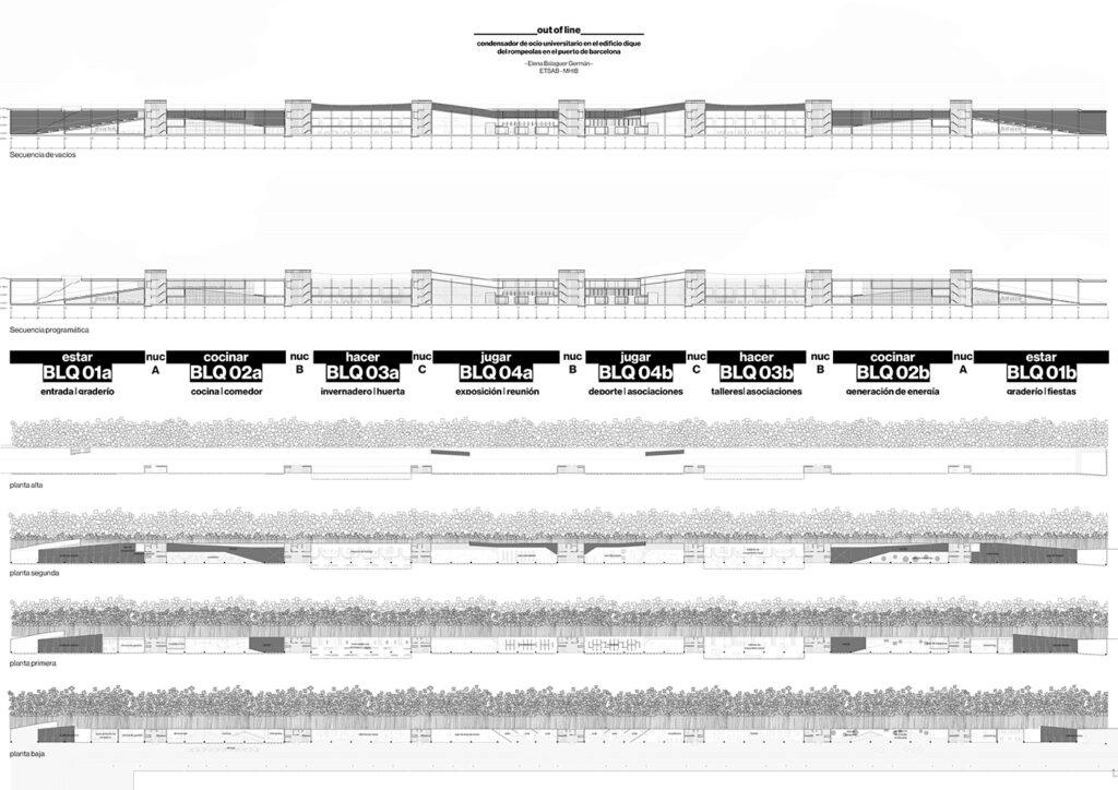 Out of line. Condensador de ocio universitario en el Edificio Dique del Rompeolas en el Puerto de Barcelona